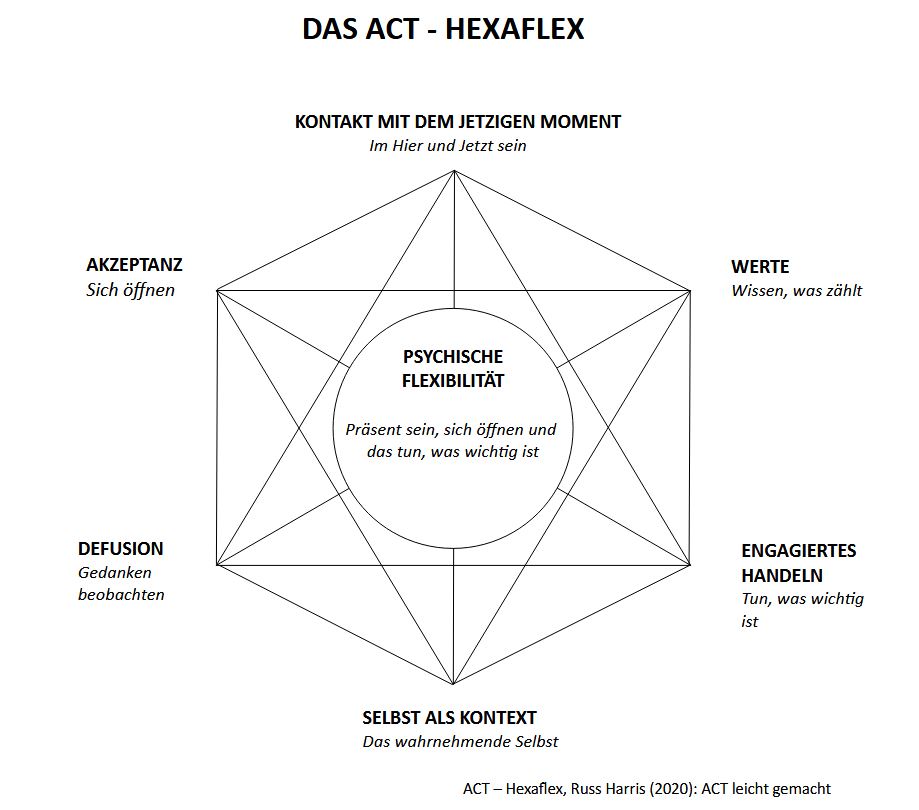 Hierfür ist vor allem eine Kernkompetenz besonders wichtig: die psychische Flexibilität. Das ist die „Fähigkeit unserem Erleben des gegenwärtigen Augenblicks mit Gewahrsein und Offenheit zu begegnen und uns in unserem Handeln von unseren Werten leiten zu lassen“ (Harris, R., 2011 und 2020).